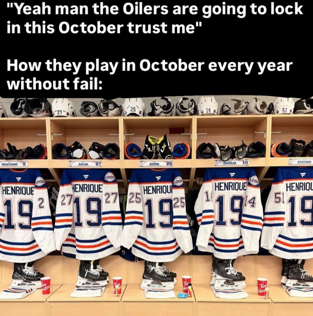 Should Edmonton be 10-0-0 right now? No, that’s not a reasonable expectation. But they should be playing better. The Canadiens have 7 wins under their belt. The Utah Mammoth have 8 wins. The Devils have won 8 games in a row. The difference is those teams are playing with fire under their feet, Edmonton is just trying to stay afloat.